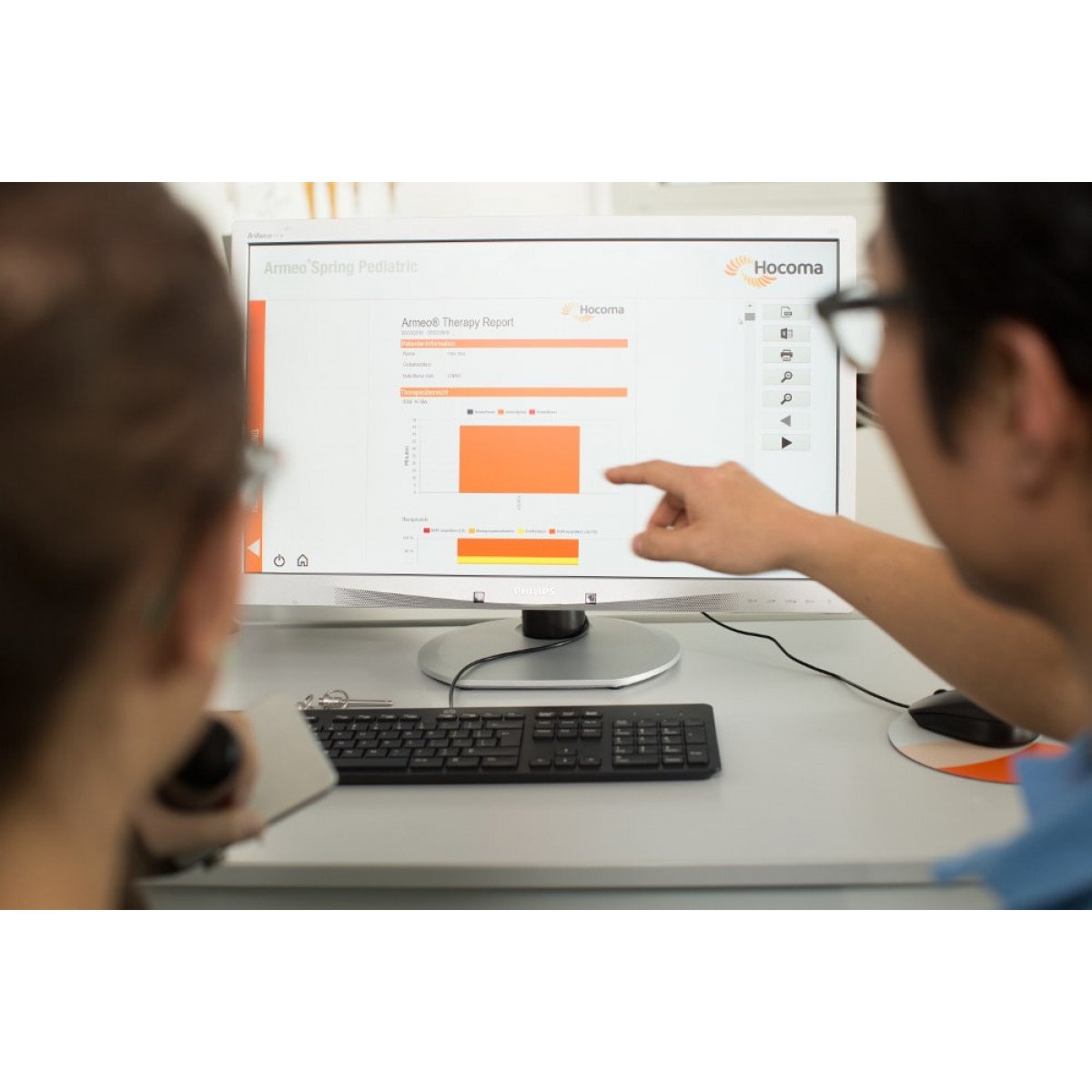 Программное обеспечение ArmeoSpring точно фиксирует движения руки, помогает оценивать прогресс и выявлять остаточные функции. Доступно более 25 упражнений с настраиваемым уровнем сложности, индивидуальный диапазон движений и персональный план терапии. Комплекс подходит для занятий прямо в инвалидной коляске, рабочее пространство регулируется под правую и левую руку, обеспечивая безопасность и комфорт во время тренировок.