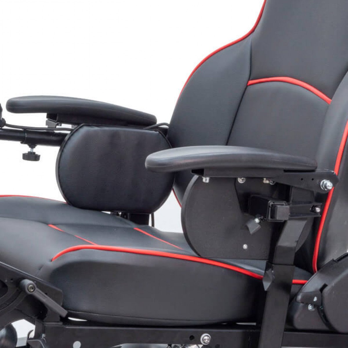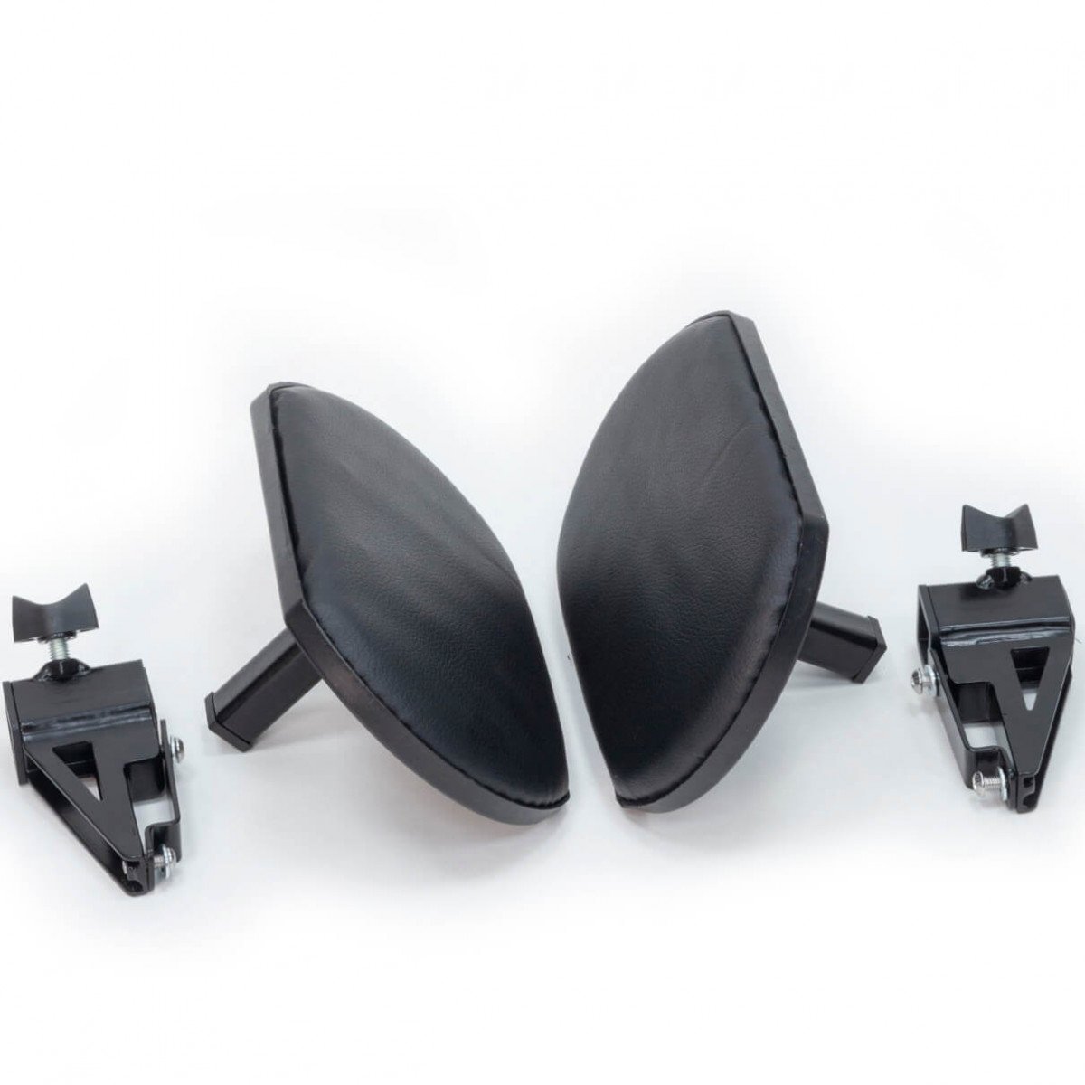 Подушки поддержек имеют пластиковый каркас с одной стороны и мягкую вставку обшитую экокожей с другой. Подушки установлены на штангах для регулировки ширины. Направляющие для подушек крепятся на стойки подлокотников. При пересаживании подлокотник можно вытащить вместе с поддержкой.