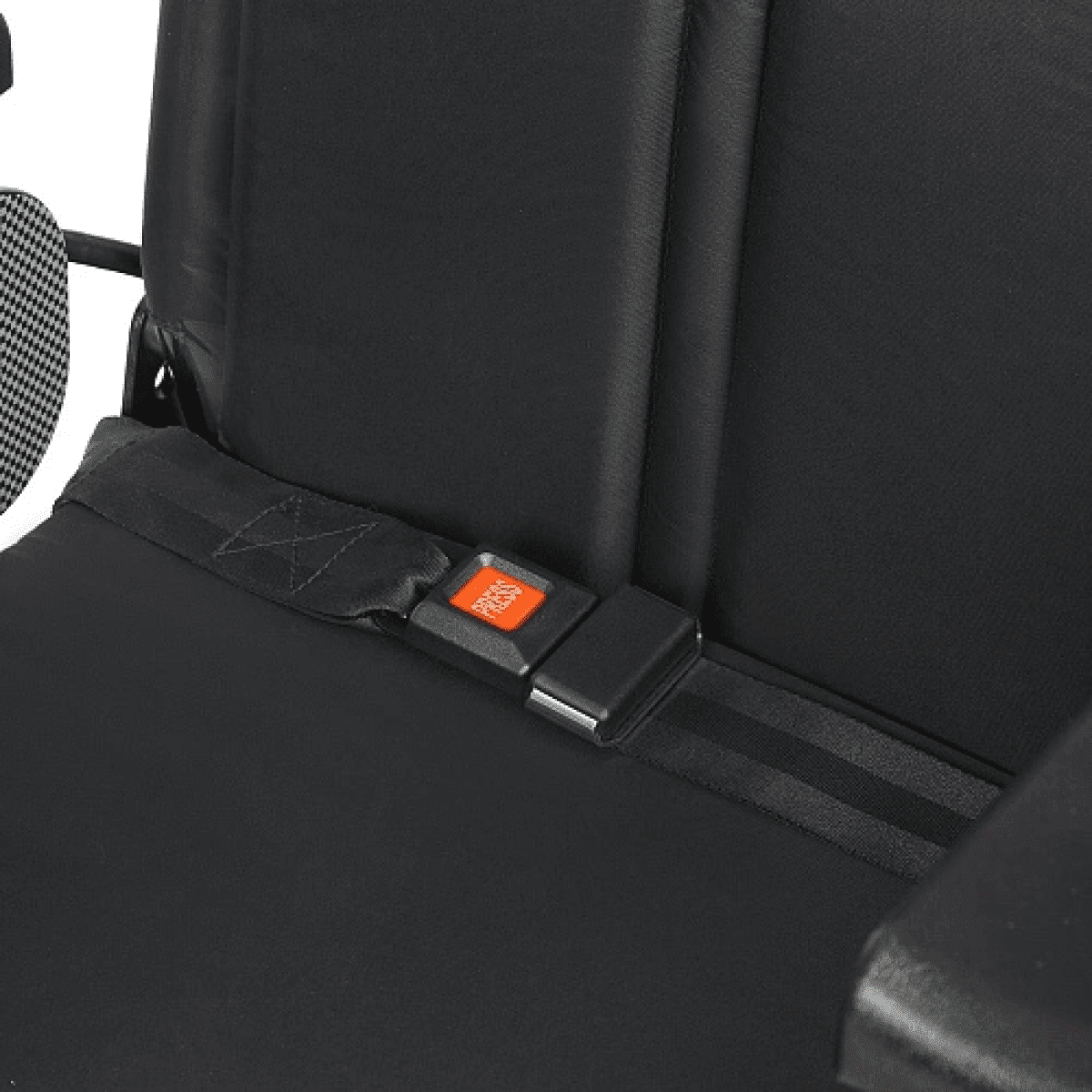 - Спинка регулируется по углу наклона с помощью ремня под сиденьем