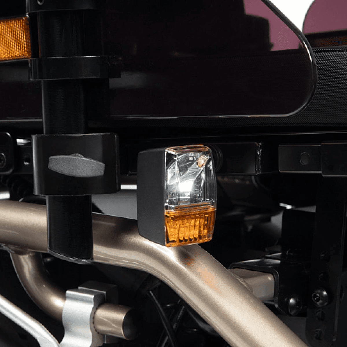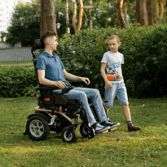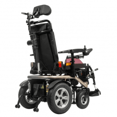 Коляска оснащена уникальным устройством для преодоления препятствий высотой до 10 см. Мощные двигатели, установленные в данной коляске, обеспечивают не только тягу, но и быстрейший набор скорости.