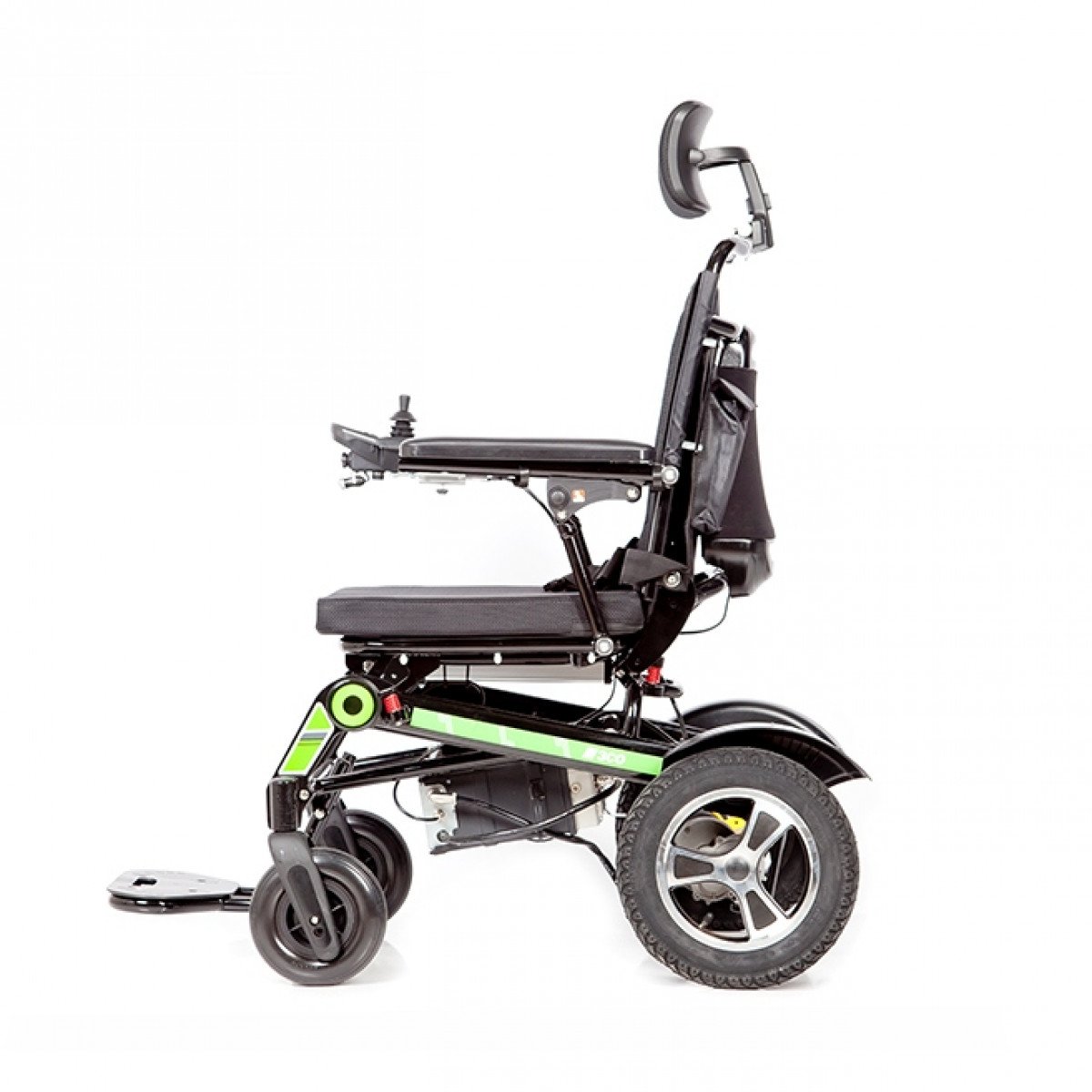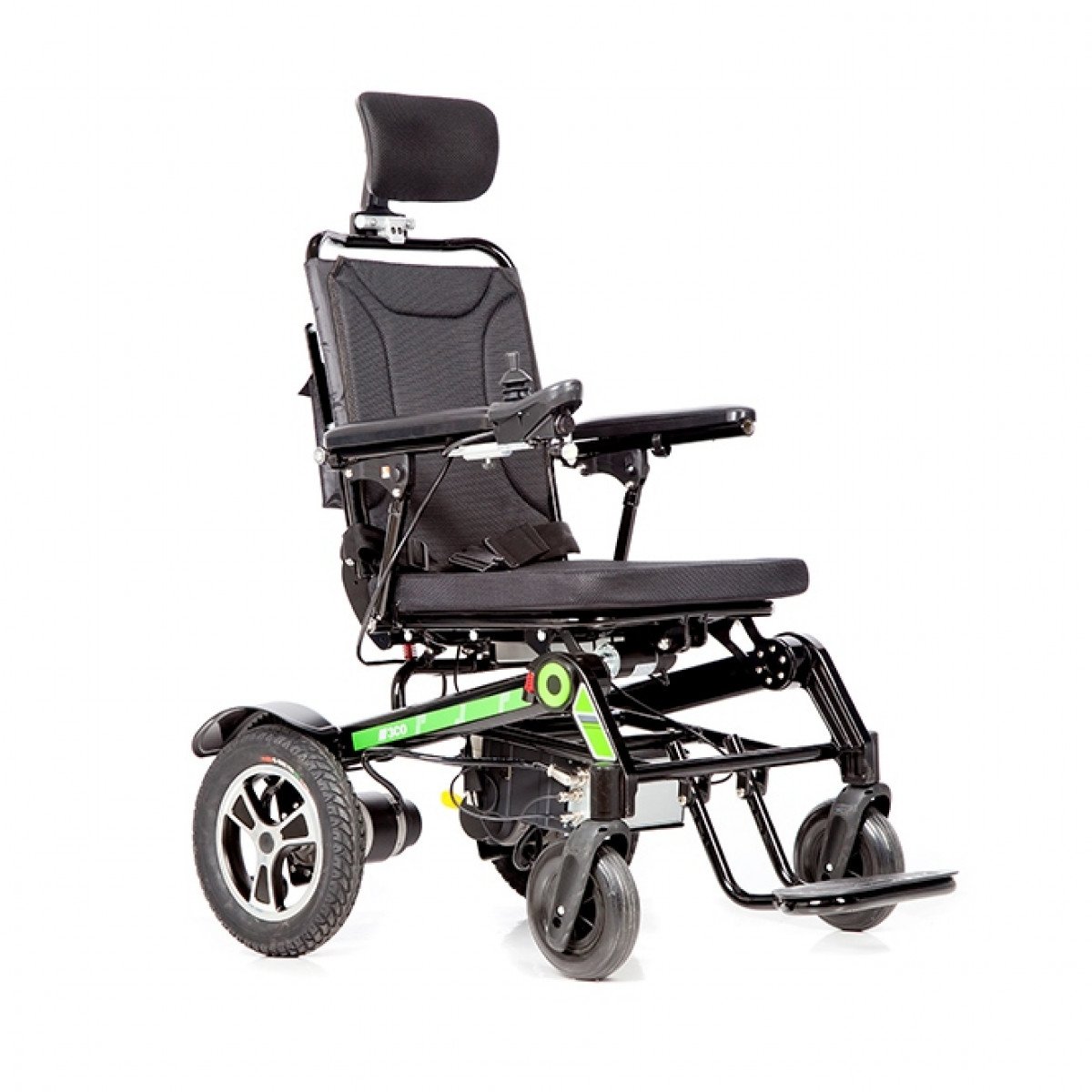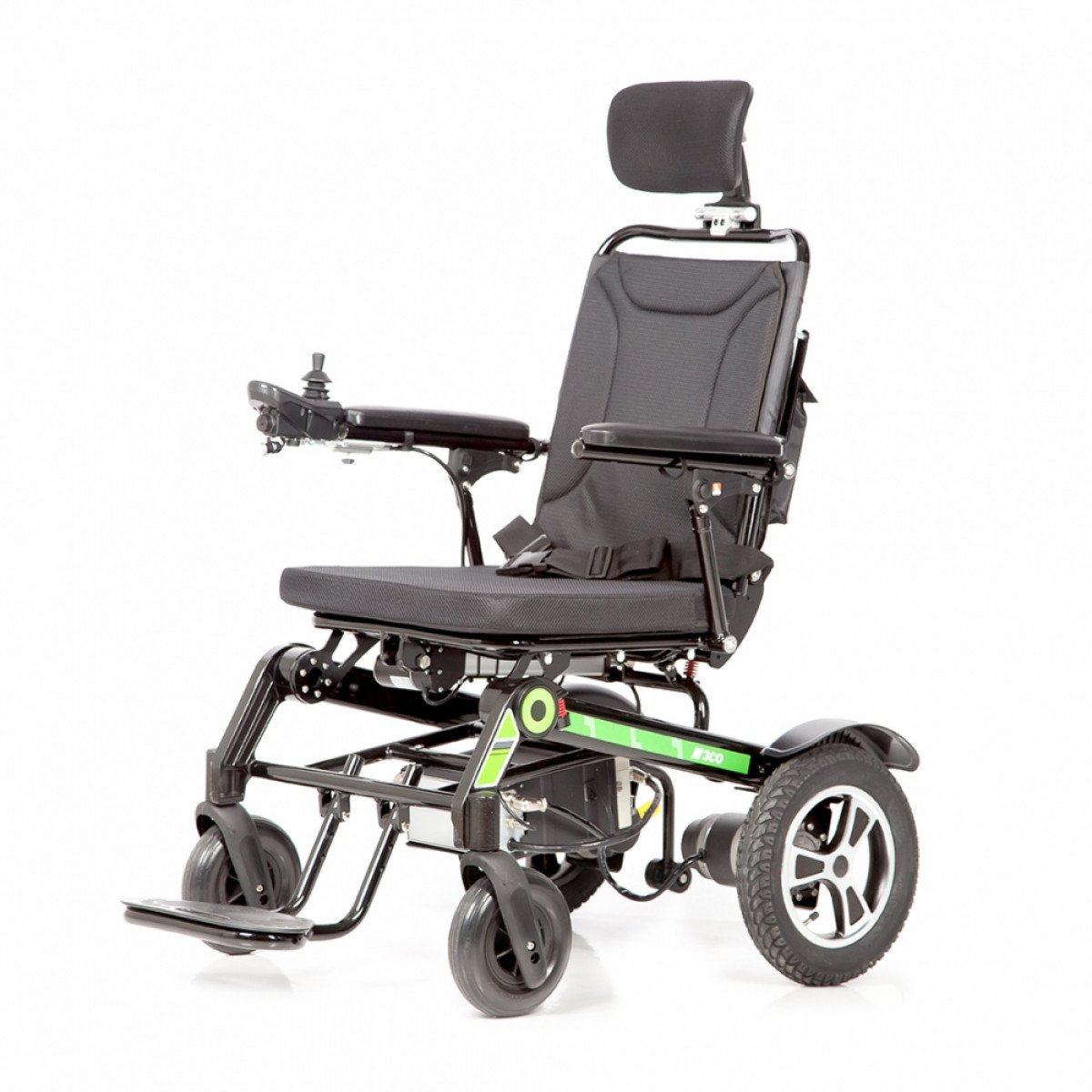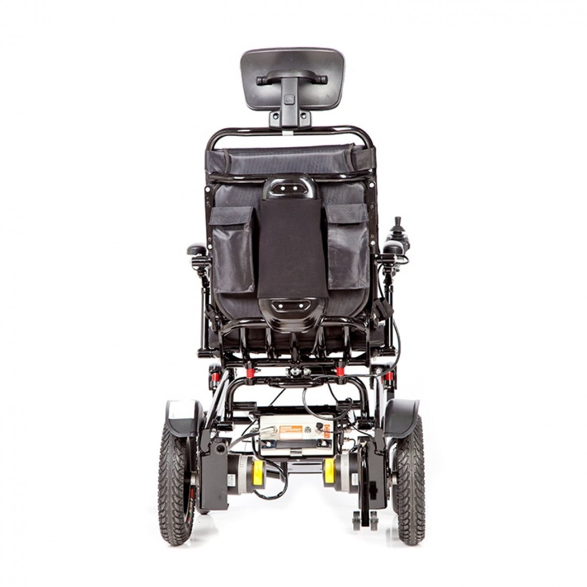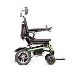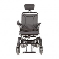 Рама изготовлена из прочного алюминия с антикоррозийным покрытием, что делает конструкцию надёжной и долговечной. Спинка складывается для удобной транспортировки. Электропривод можно отключить, чтобы использовать коляску в режиме сопровождения. Управление осуществляется манипулятором, который можно установить под любую руку и настроить по вылету, а для дополнительного удобства предусмотрен пульт дистанционного управления. В комплект входит зарядное устройство и всё необходимое для эксплуатации.