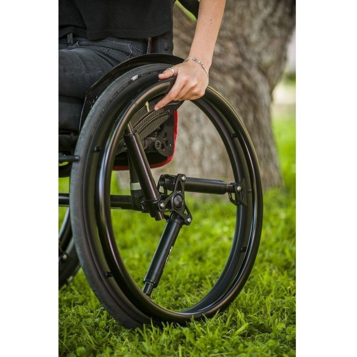 Секрет технологии — во встроенной системе поглощения ударов, которая активируется только тогда, когда это действительно нужно. На ровной дороге колёса ведут себя как обычные, а при наезде на неровности берут удар на себя, уменьшая вибрации и толчки. Центральная ось остаётся стабильной, поэтому лишние колебания не передаются на раму коляски и не ощущаются пользователем.