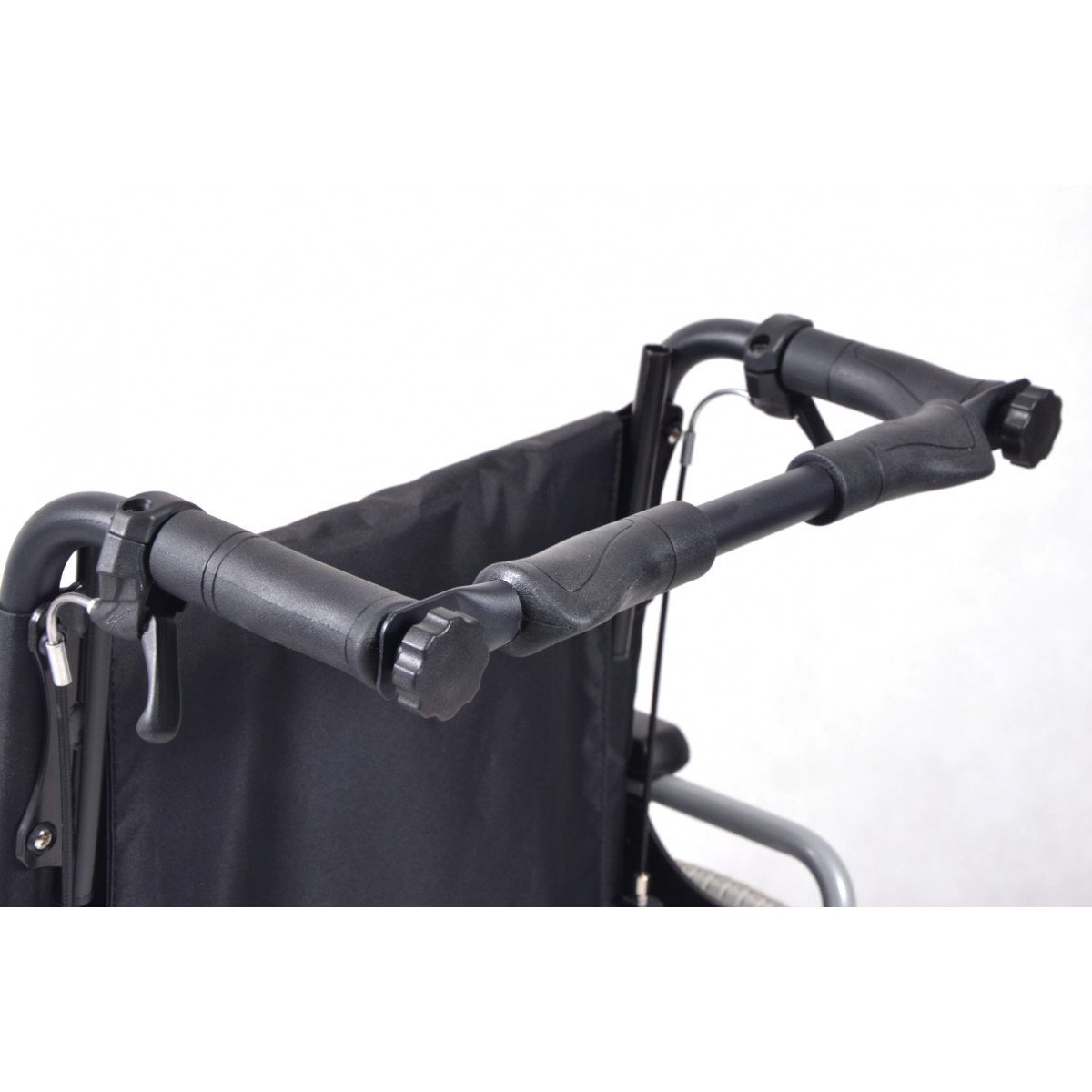 Коляска имеет множество индивидуальных настроек — можно регулировать глубину и натяжение сиденья, высоту подлокотников и подножек, а также подобрать оптимальную жёсткость спинки с помощью ремней. Это делает модель особенно удобной для длительного использования. Сиденье и спинка выполнены из прочной нейлоновой ткани, которую легко снять и очистить. В комплект входит противопролежневая подушка для дополнительного комфорта.