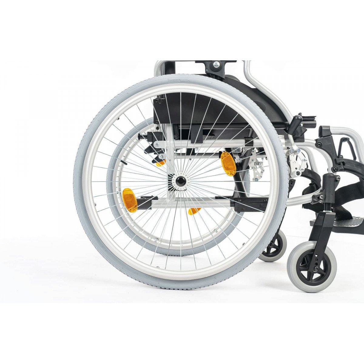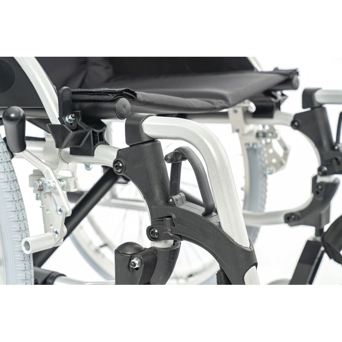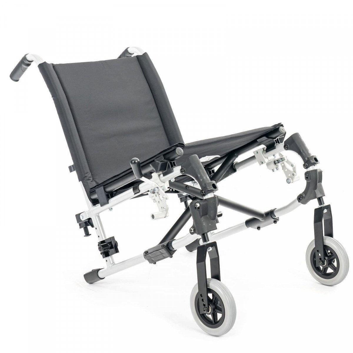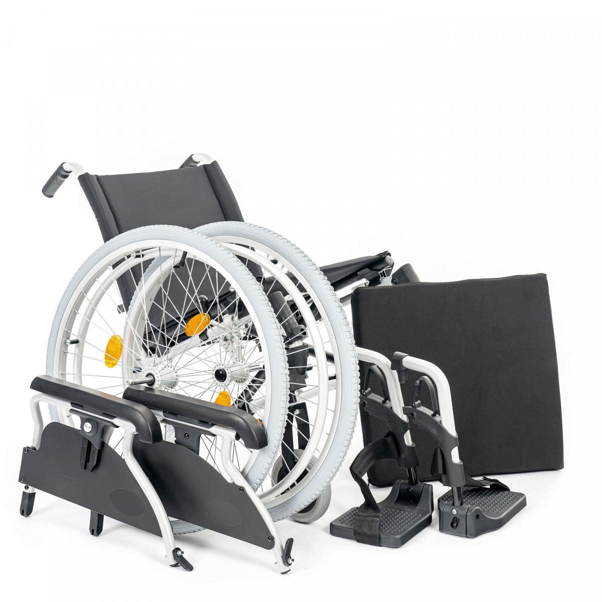 Подлокотники откидные и регулируются по высоте, что облегчает пересаживание. Поручни выполнены из цельного пенополиуретана и дополнены боковыми защитными панелями. Подножки съёмные, регулируются по высоте и углу наклона, а ремни для фиксации ног изготовлены из гипоаллергенного материала. Задние колёса оснащены быстросъёмными механизмами. В зависимости от модификации используются цельнолитые колёса для помещений или пневматические колёса для прогулок на улице.