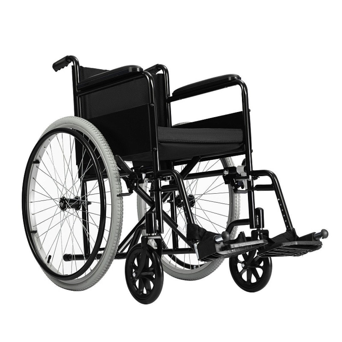 Подножки съёмные, откидные и регулируются по длине голени, что помогает настроить удобное положение ног. Откидные опоры для стоп и продуманная конструкция делают посадку и использование коляски более комфортными.