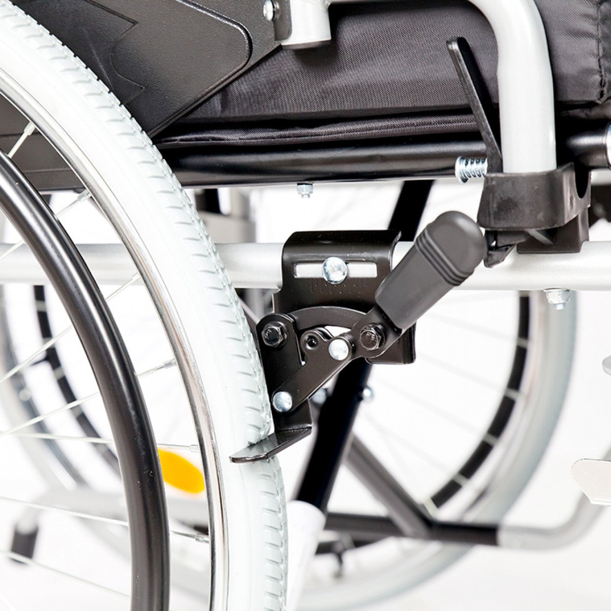 Коляска легко адаптируется под пользователя: подлокотники регулируются по высоте с помощью проставок, при необходимости откидываются или снимаются для удобного пересаживания. Подножки также снимаются или откидываются, а раздельные опоры для стоп помогают правильно разместить ноги. Сиденье можно настроить по высоте, что упрощает подбор посадки под рост и задачи пользователя. Складная конструкция позволяет быстро сложить Alpha Luxe 103 без инструментов и сэкономить место при хранении или перевозке.