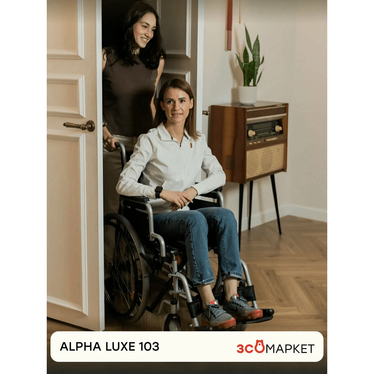 Кресло-коляска ЗСО Alpha Luxe 103 (Альфа Люкс 103) — универсальная модель с ручным приводом, рассчитанная на нагрузку до 130 кг. Подходит для дома и улицы, сочетает комфортную посадку, регулируемые элементы и надёжную конструкцию.