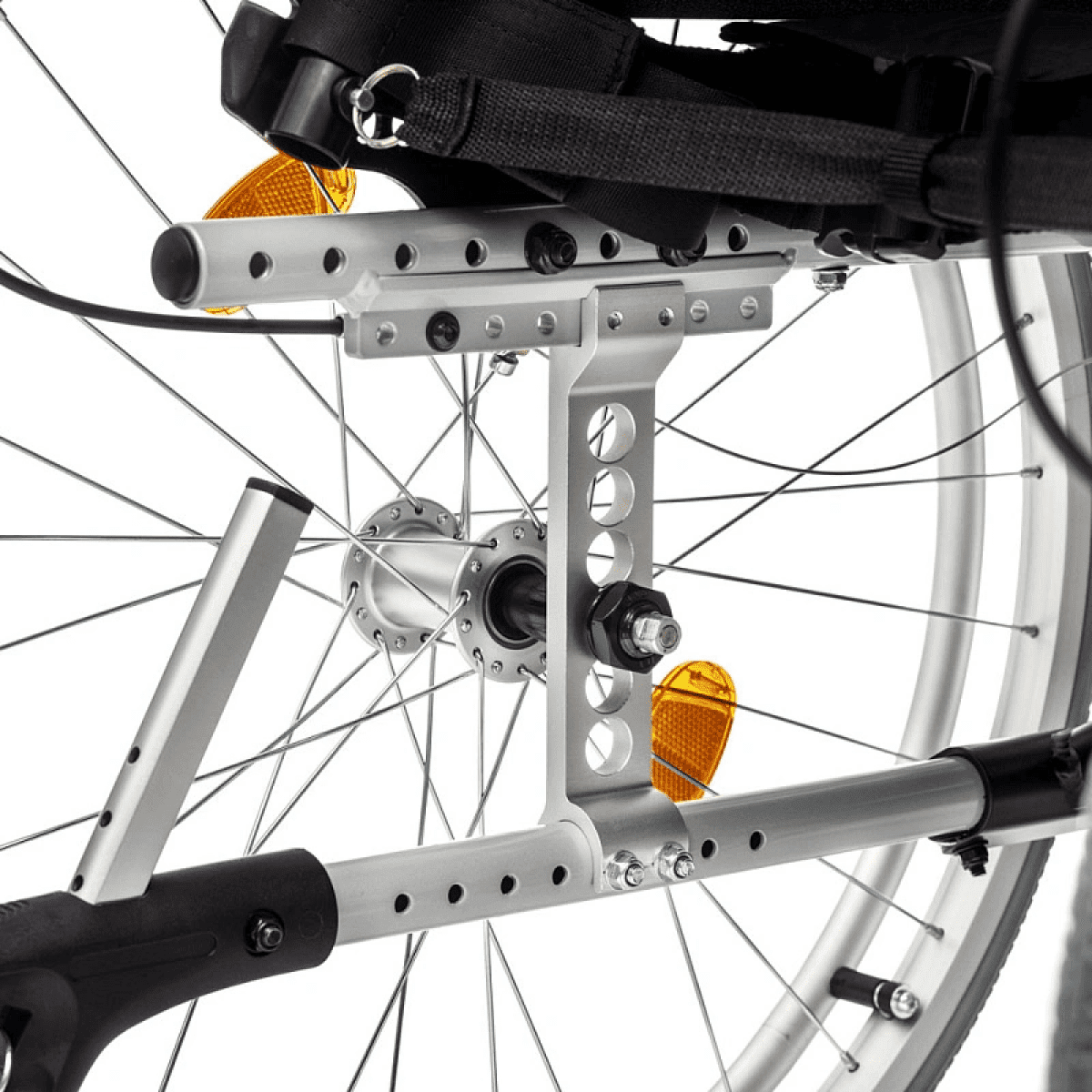 - Съёмные колесные антиопрокидыватели регулируются по высоте