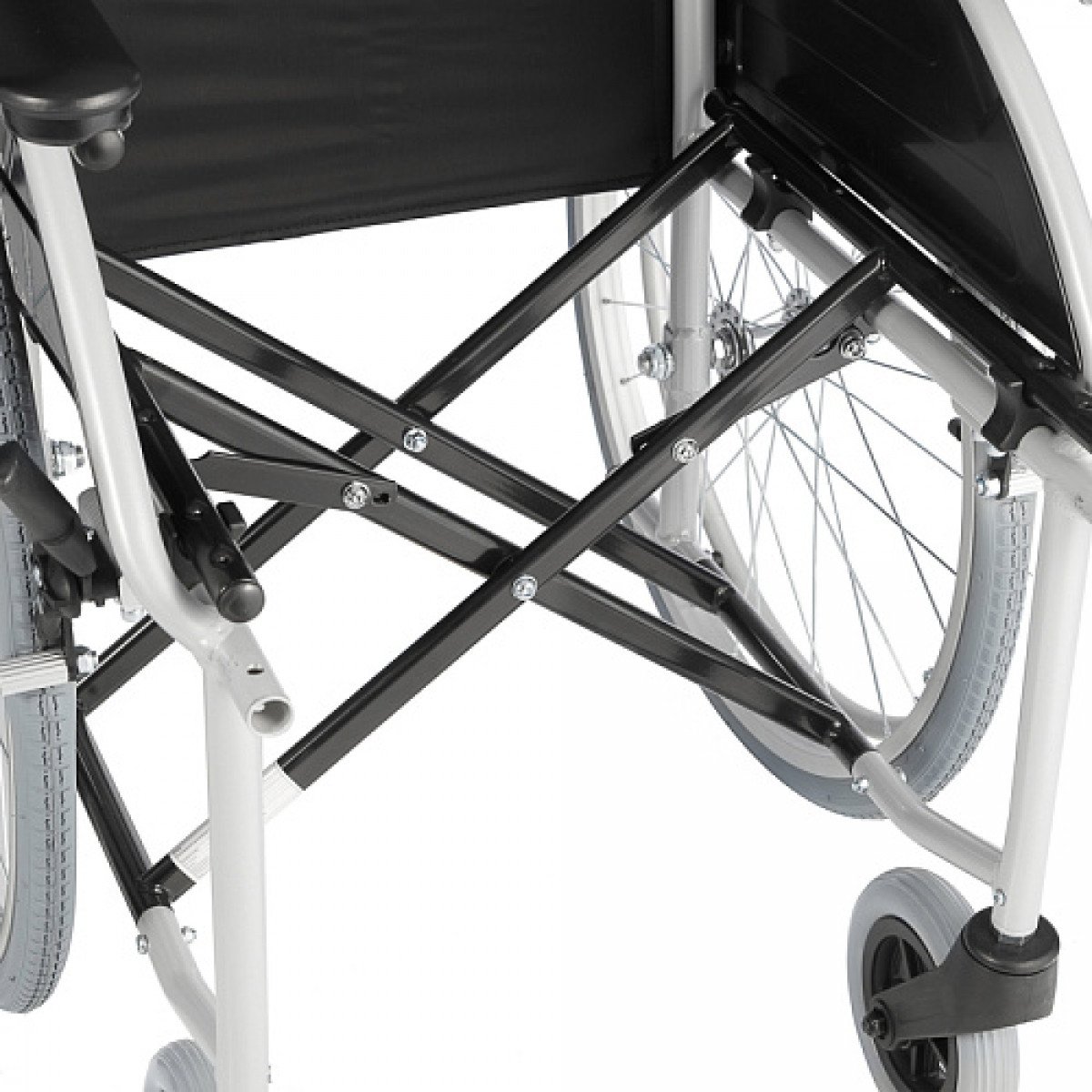 Для сопровождающего предусмотрены съёмные ручки и упоры, а задние колёса оснащены надёжными стояночными тормозами для безопасной фиксации коляски.