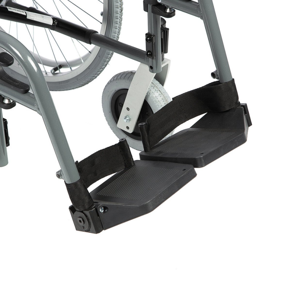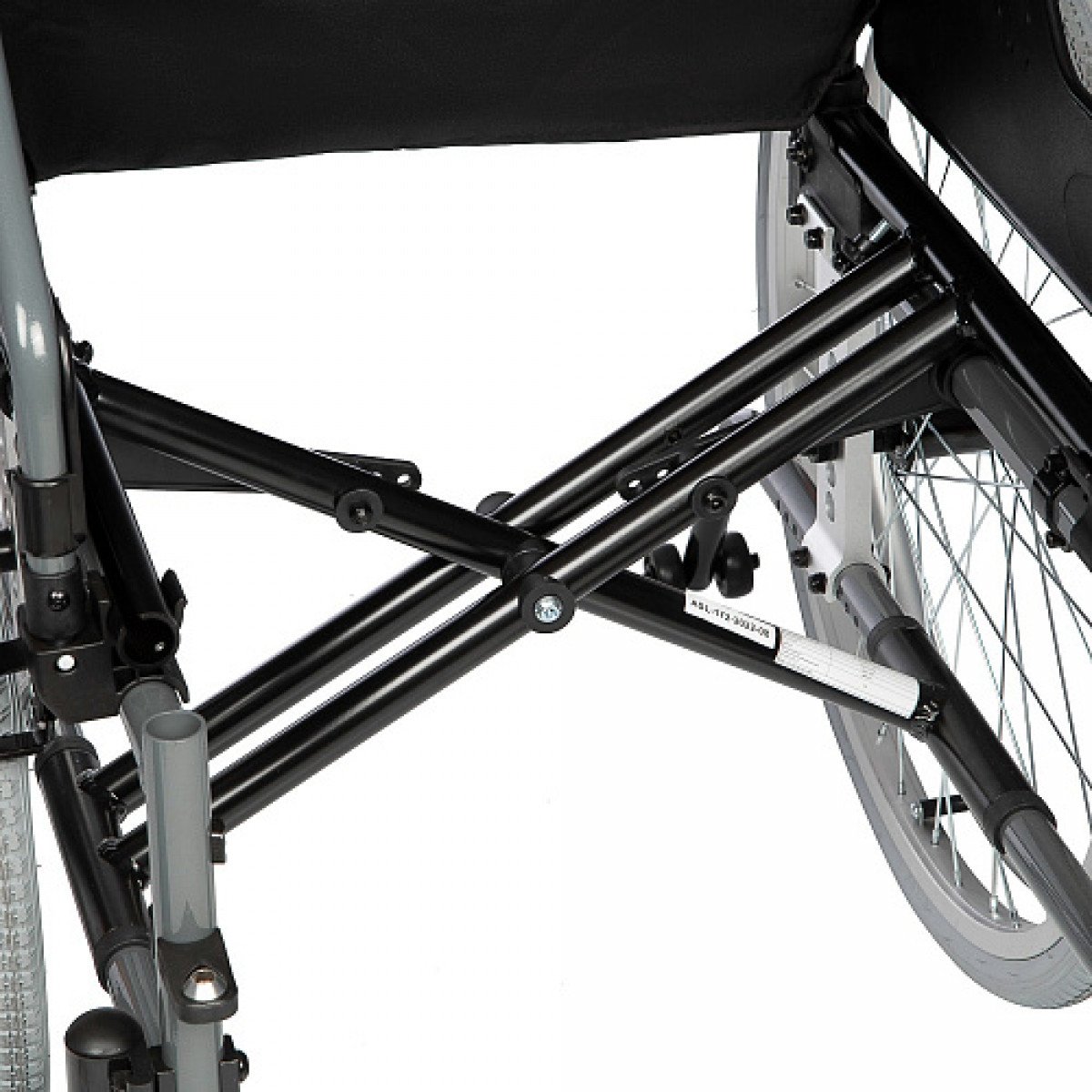 Съёмные и откидные подлокотники, а также откидные подножки облегчают пересаживание. Быстросъёмные задние колёса помогают компактно сложить коляску для перевозки.