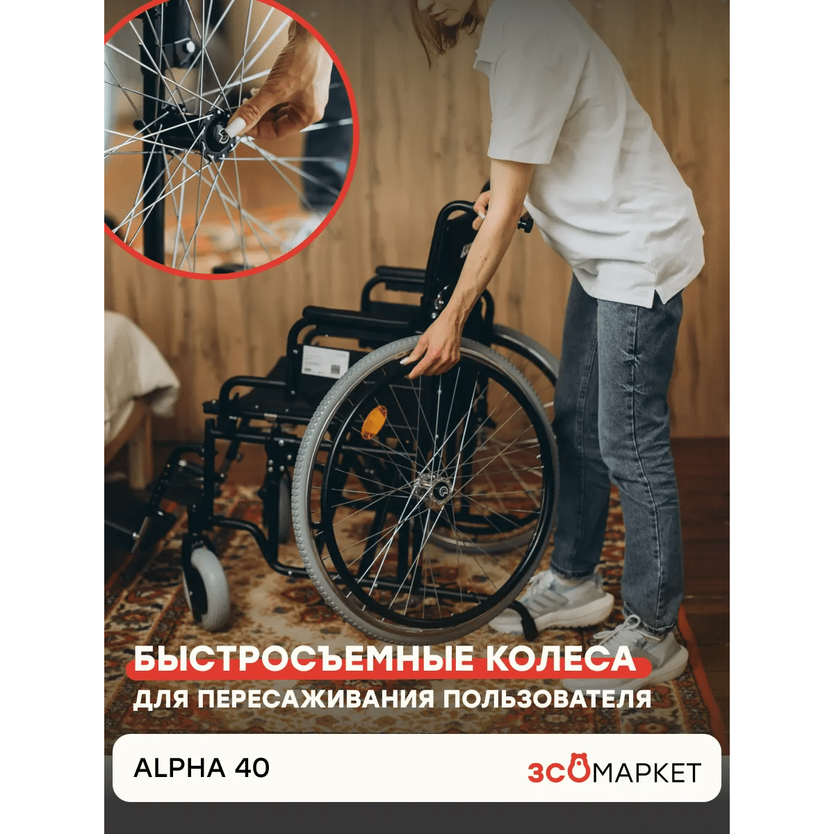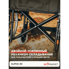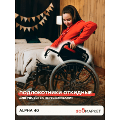 Кресло-коляска ЗСО Alpha 40 (Альфа 40) — усиленная модель с увеличенной шириной сиденья и грузоподъёмностью до 160 кг. Подходит для пользователей, которым нужноо больше пространства, надёжная опора и комфорт при ежедневном передвижении.