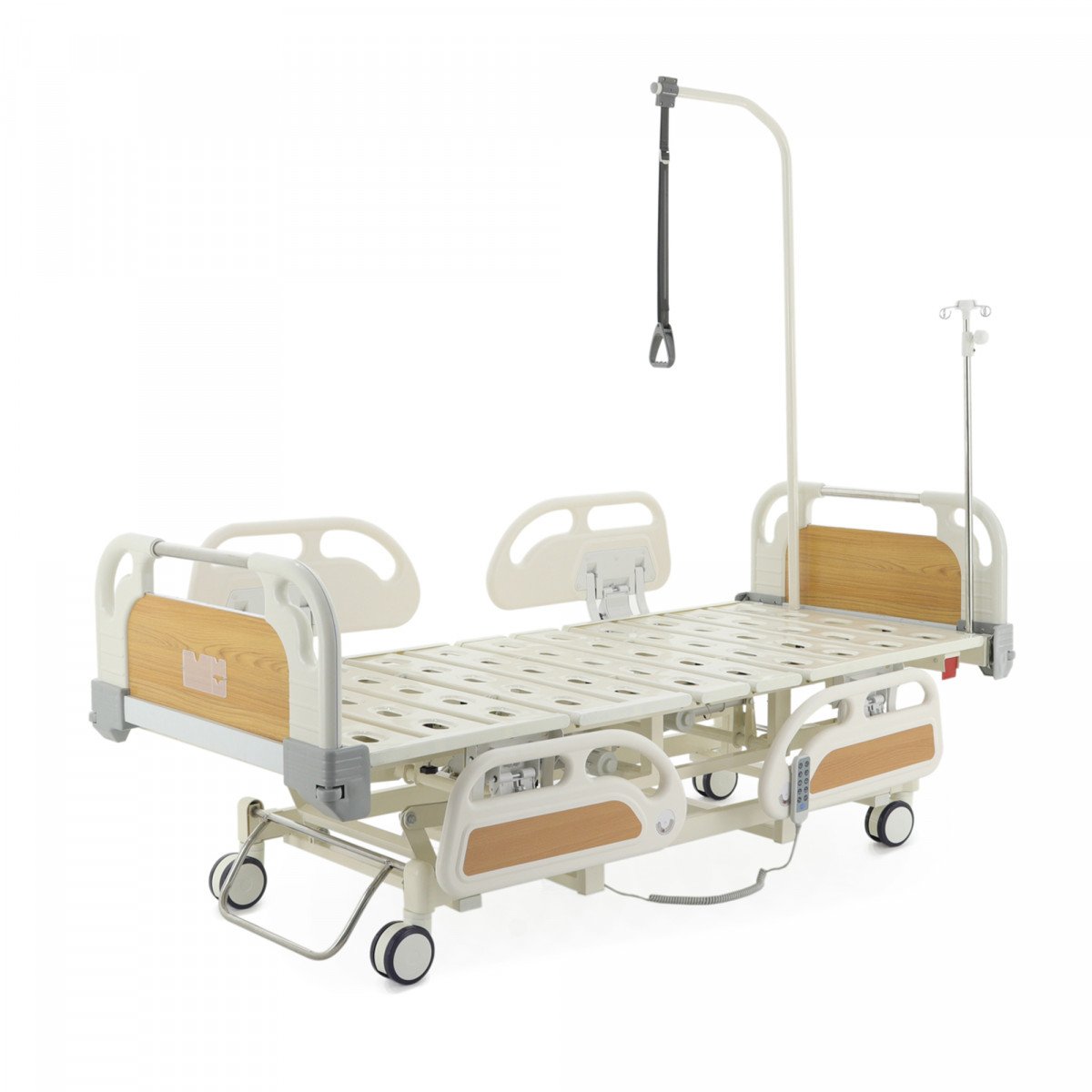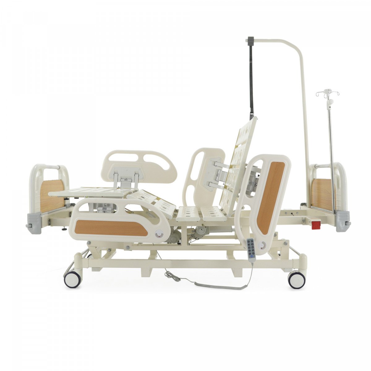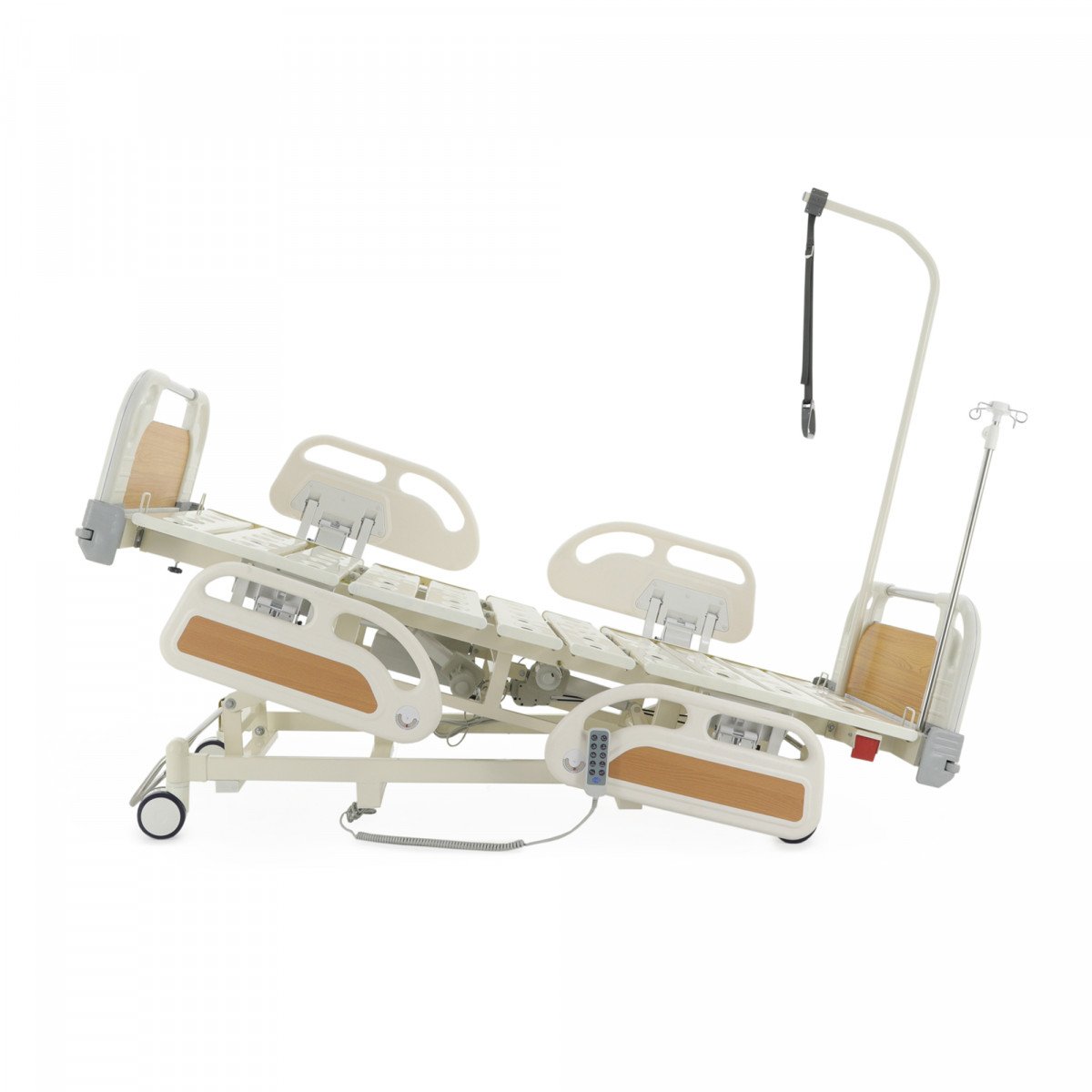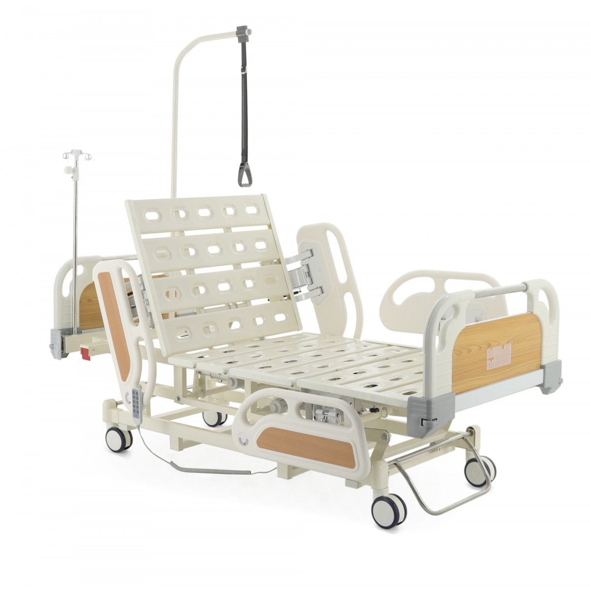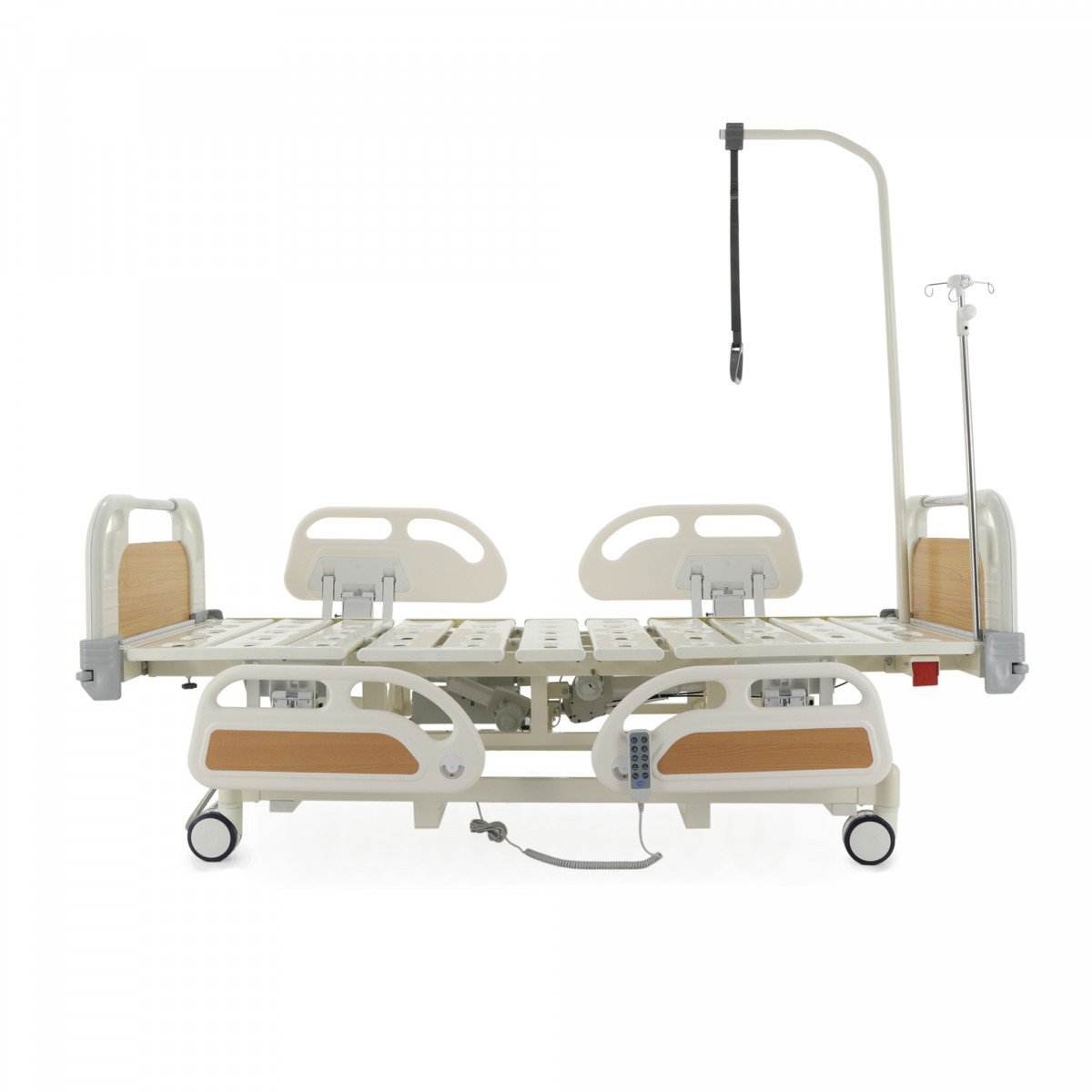Каркас выполнен из стальных труб с эпоксидным покрытием и рассчитан на длительную ежедневную эксплуатацию. Подвижная конструкция из 5 секций позволяет легко менять положение тела, а стальные ламели улучшают вентиляцию и поддержку матраса. В конструкции предусмотрены отверстия для установки инфузионных стоек и дуги для подтягивания, что делает кровать удобной для медицинских процедур и самостоятельных движений пользователя.
