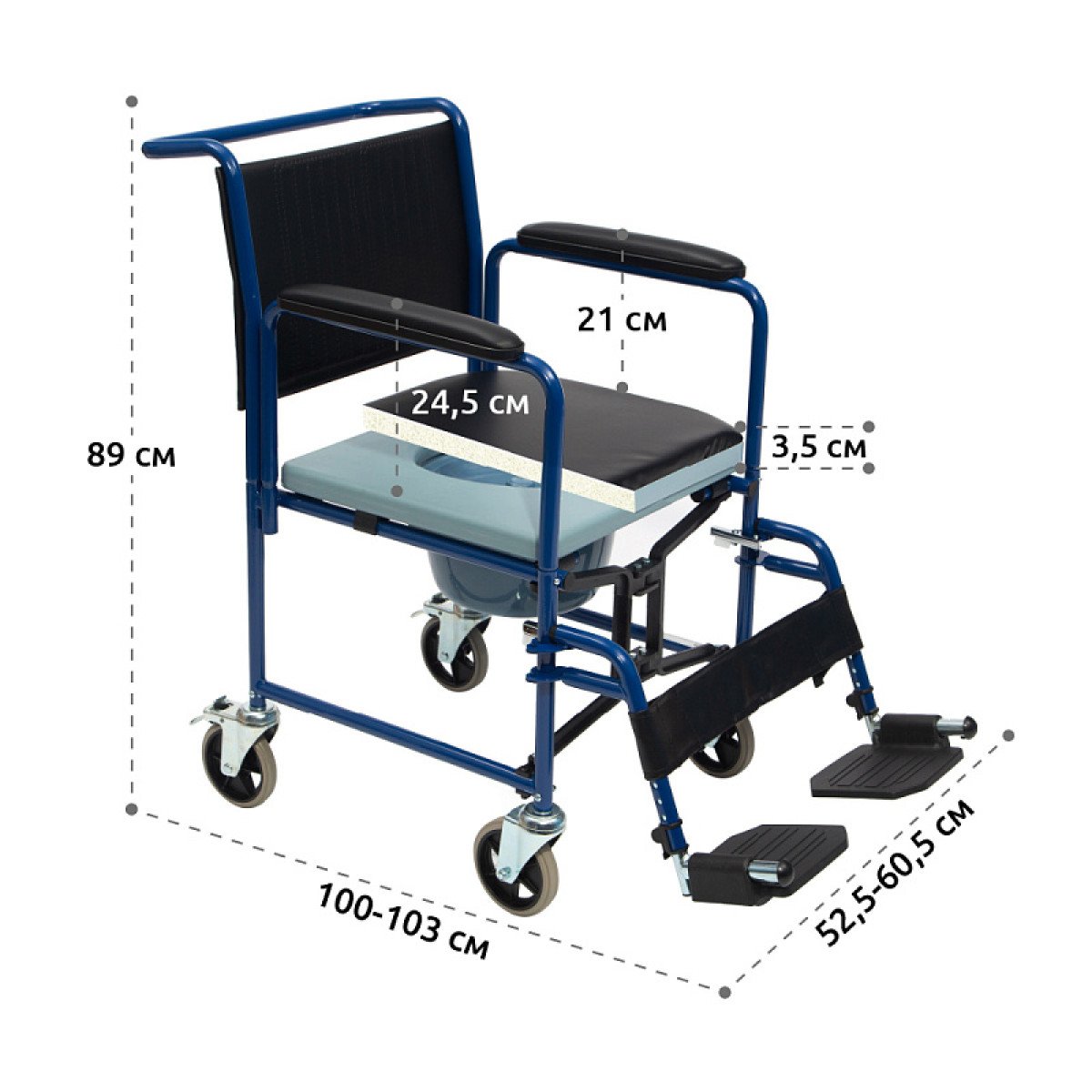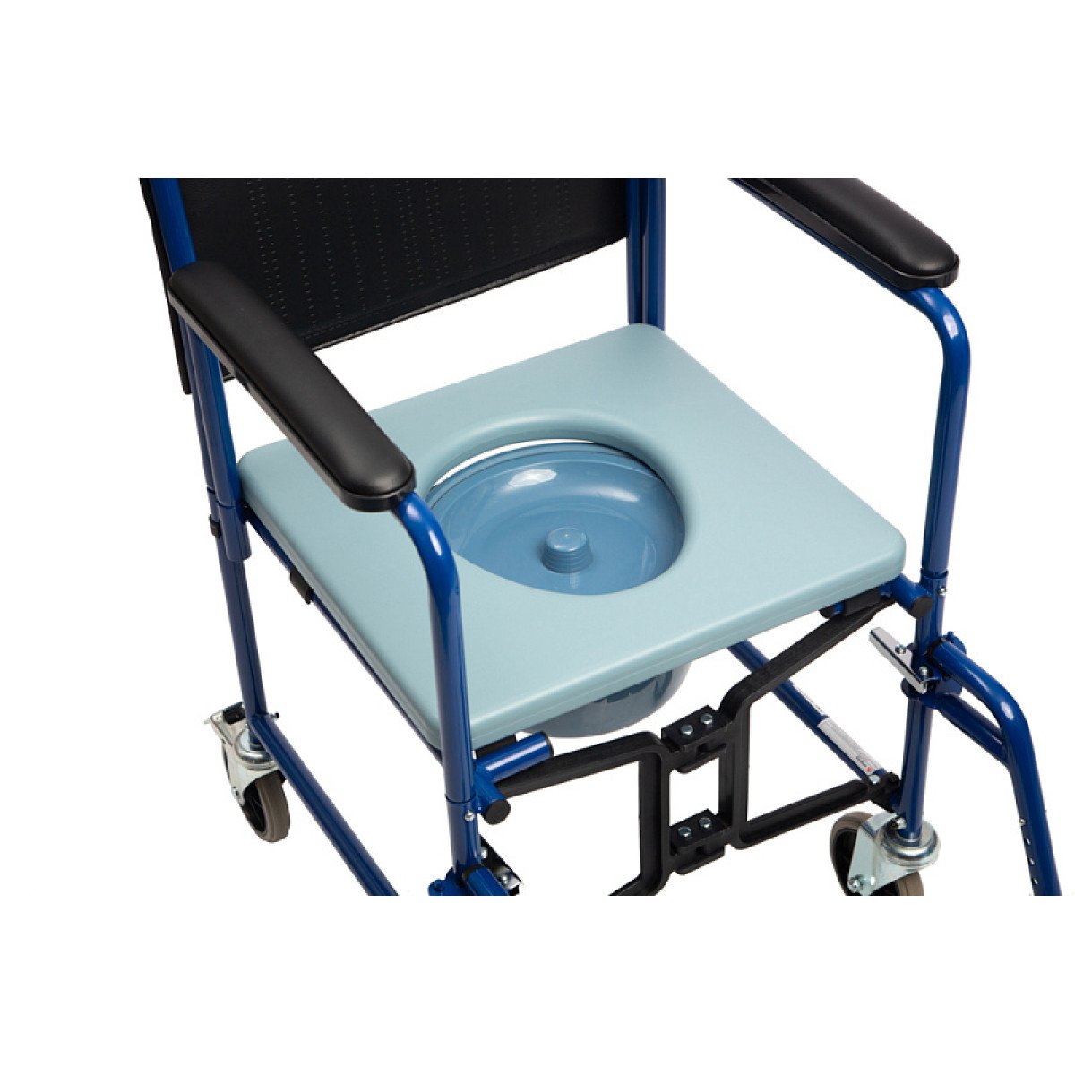 Конструкция разборная — кресло удобно хранить и перевозить. При необходимости его можно использовать совместно со стационарным унитазом, что делает модель практичной для домашнего ухода.