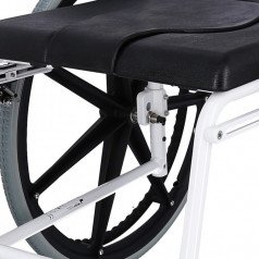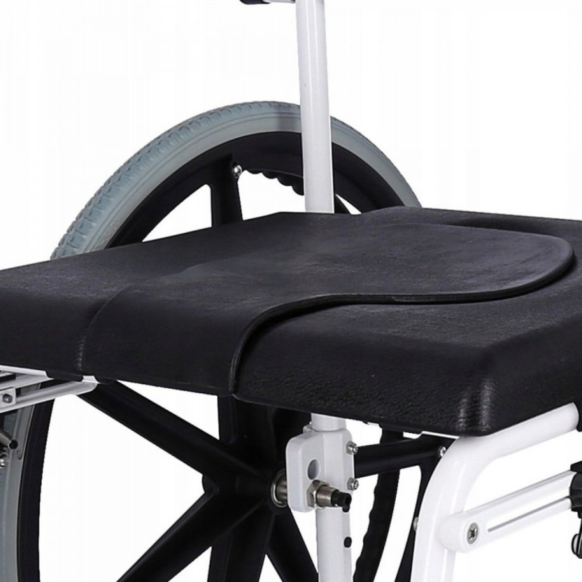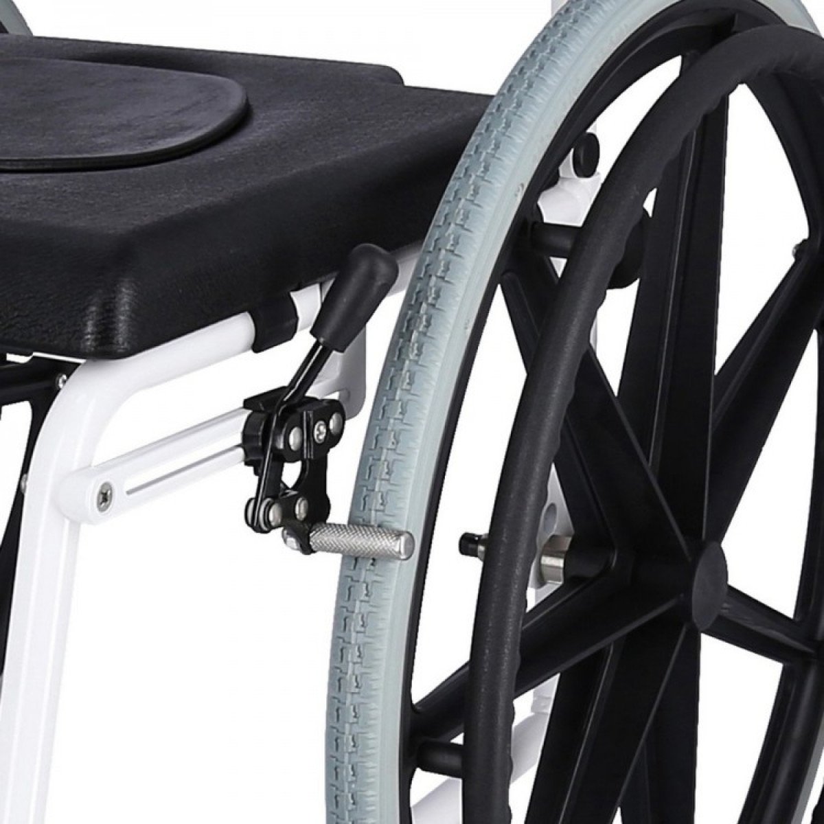 Конструкция разработана с учётом эксплуатации в помещении и вне его, обеспечивая удобство и безопасность при проведении санитарных процедур. Коляска помогает пользователю сохранять больше самостоятельности, а также облегчает работу сопровождающего персонала.