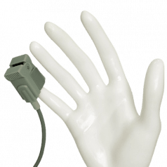 Датчик рассчитан на пациентов с массой тела от 15 до 42 кг. Удобная клипсовая конструкция позволяет быстро и легко зафиксировать его на указательном пальце, обеспечивая надёжное прилегание без сдавливания. Продуманная форма делает процесс измерения комфортным и безопасным для ребёнка, даже при регулярном использовании.