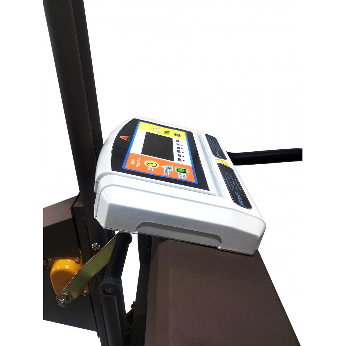 Регулировка подвеса осуществляется вручную — достаточно повернуть рукоятку. Крепление жилета можно установить на высоте 100–170 см от бегового полотна, что удобно для пользователей разного роста и возраста. При необходимости тренировки проводятся и без подвеса: мощный мотор выдерживает нагрузку до 120 кг, сохраняя плавность и устойчивость работы.