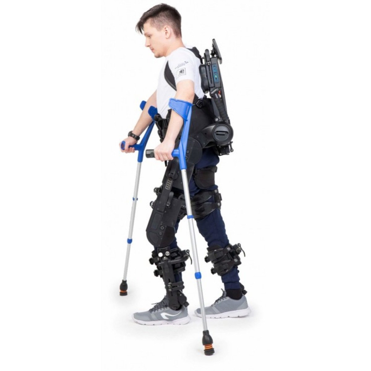 - Управление с пульта на костыле, с планшета сопровождающего или врача, со страховочных ручек сопровождающего
