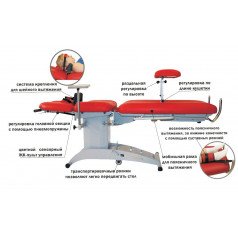 Он оснащён дисплеем для отображения силы вытяжения в реальном времени и таймером для настройки времени процедуры. Кушетка тренажёра имеет подвижную секцию, которая предотвращает трение при вытяжении, а в статическом положении может использоваться как массажный стол.